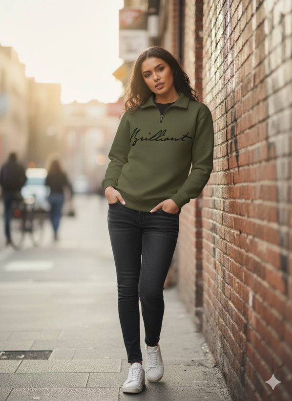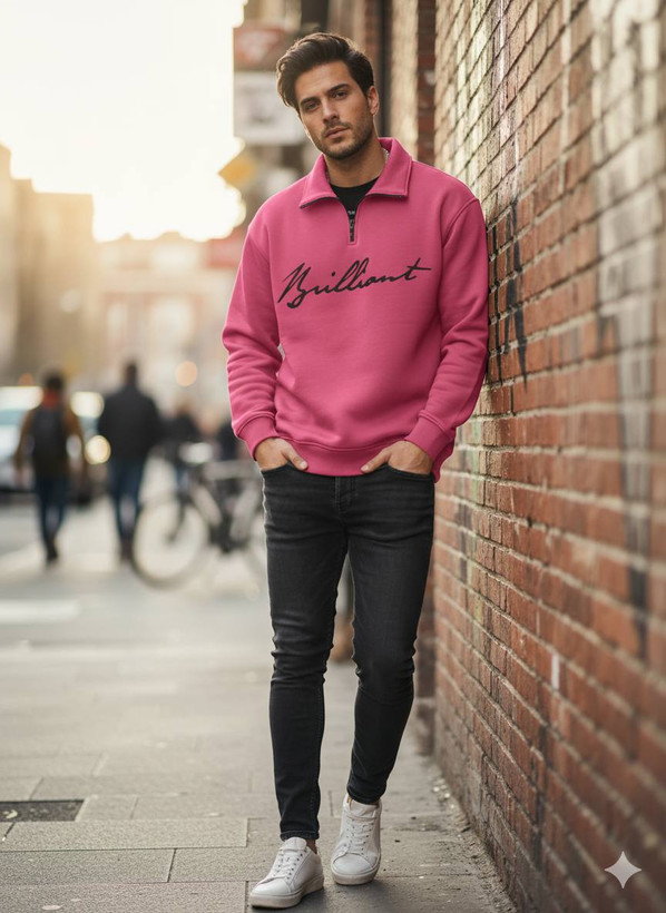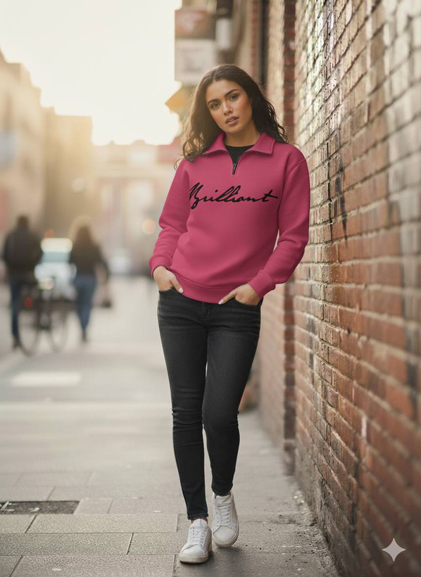 مدل نیم زیپ آن که تا روی سینه امتداد دارد امکان تنظیم دمای بدن و تنوع در نحوه پوشیدن را به شما میدهد. طرح "Brilliant" که با فونتی زیبا روی سینه گلدوزی یا چاپ شده است، جلوهای خاص و متمایز به این دورس صورتی رنگ بخشیده و آن را از دورسهای ساده متمایز میکند. این دورس برای خلق یک استایل راحت و در عین حال جسورانه و شیک در روزهای پاییز و زمستان انتخابی بینظیر است.